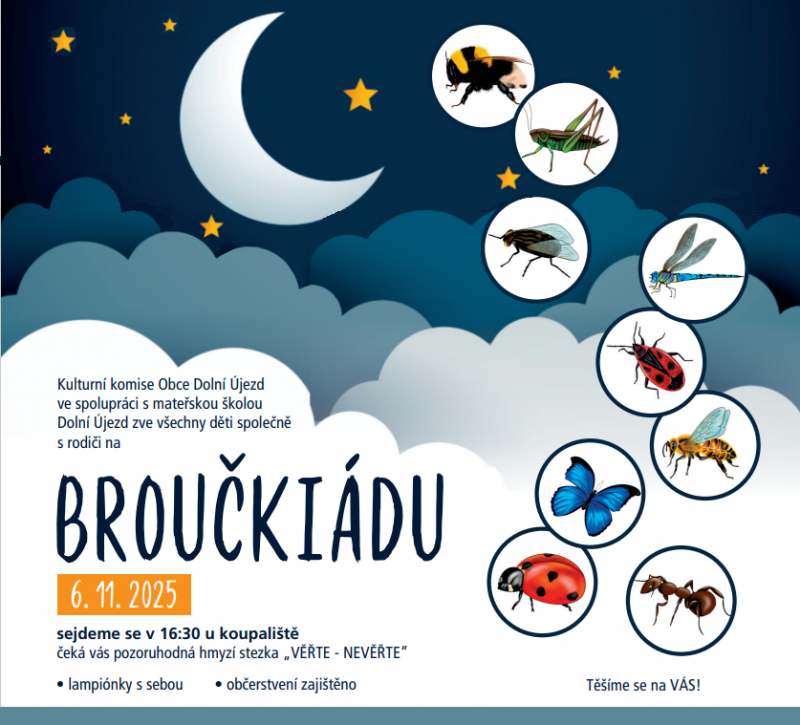 V příštím týdnu, od úterý 27.8., začneme realizovat akci „Obnova soustavy veřejného osvětlení Dolní Újezd“ na snížení energetické náročnosti veřejného osvětlení v naší obci, která zahrnuje výměnu stávajících starých svítidel za nová úspornější.