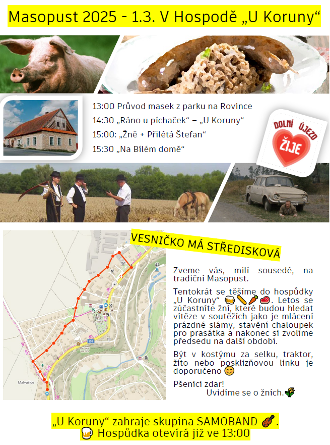 Tradiční průvod masek, tentokrát na téma Vesničko má středisková...