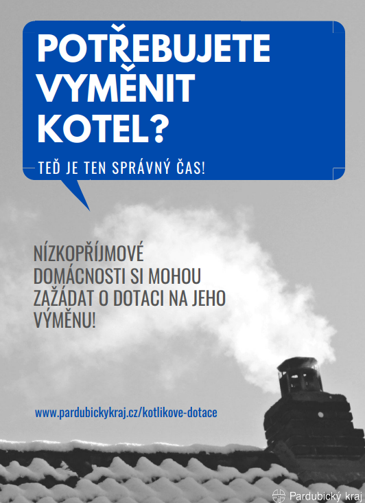 Pardubický kraj bude v roce 2022 poskytovat kotlíkové dotace pro žadatele s nižšími příjmy. Vyhlášení výzvy Pardubického kraje na předkládání žádostí o kotlíkovou dotaci je plánováno na květen 2022, ukončení příjmu žádostí bude 31. 8. 2022.